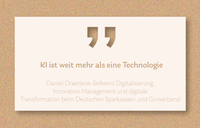 In der BANKINGNEWS 271 erklärt Daniel Draenkow, Referent Digitalisierung, Innovation Management und digitale Transformation des Deutscher Sparkassen- und Giroverband: „KI ist weit mehr als eine Technologie“ und man solle fortlaufend überprüfen, „ob die KI wunschgemäß funktioniert und ob die Algorithmen aufgrund fehlerhafter oder schlechter Daten zu Vorurteilen und Diskriminierung neigen“.