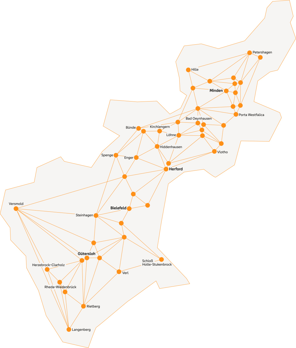 - 4 Regionalzentren in Bielefeld, Gรผtersloh, Herford und Minden